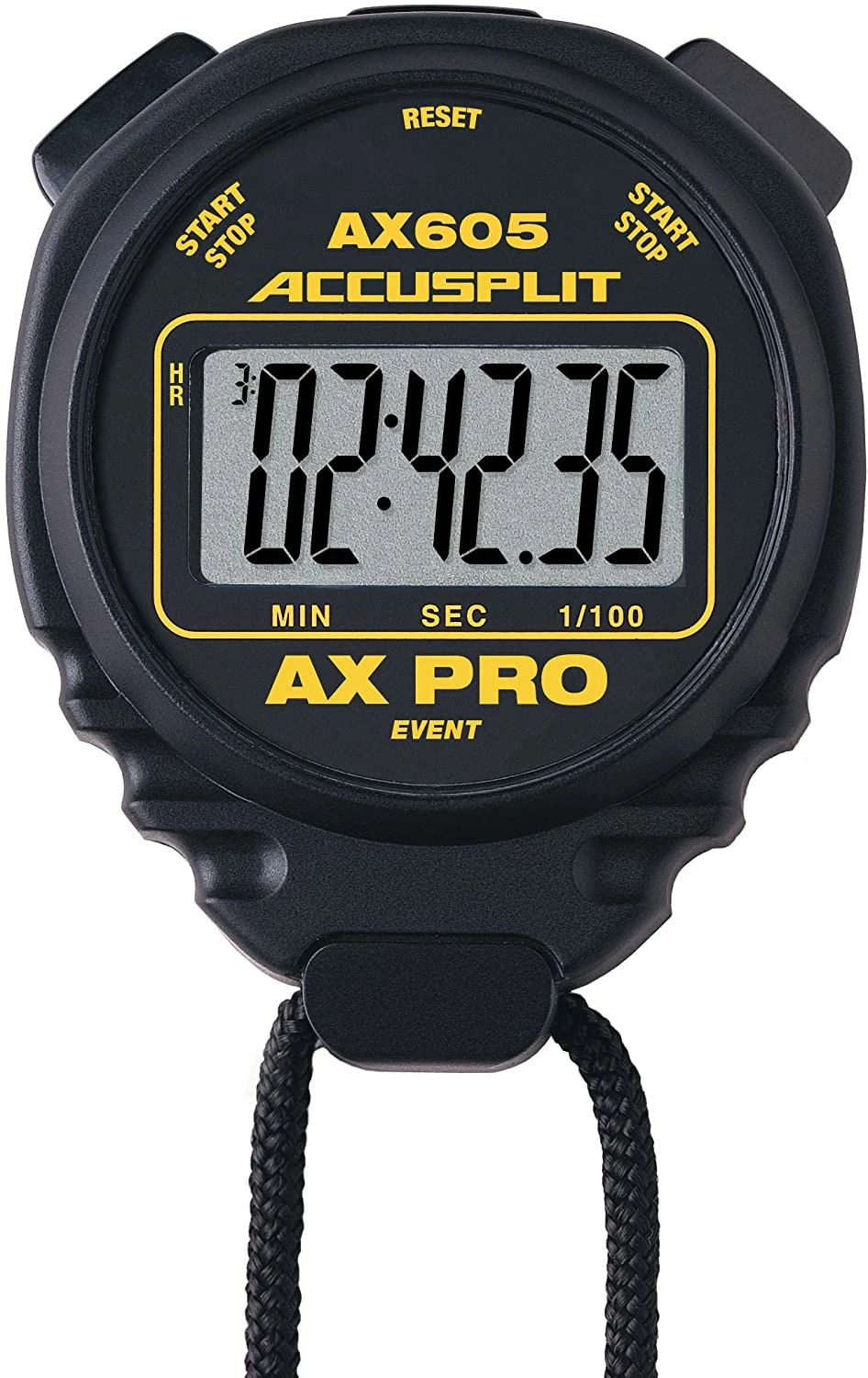 AX 605 AX Pro Series Stopwatch is great for Event Timing . Extremly large digits for easy viewing on the field, track, or by the pooladd to the appeal of these stopwathces. Exclusive “AOS” Operating System with Twin Left-Right button operation feature its designed to give coaches, athletes, and timers the most precise timing available. All AX Pro Series Stopwatches are cased in Accusplit’s distinctive, ergonomic designed “X” Case.