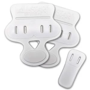 3 piece lightweight molded slotted hip pad set. Includes hip pads and spine pad. All-Star’s super lightweight line up of football pads are constructed from extra durable lightweight cross linked polyurethane foams providing less weight and bulk than conventional pads while maintaining maximum protection. Hip pads feature All-Star’s exclusive “DuraGuard” plastic shell for additional protection and to reinforce the belt slots.