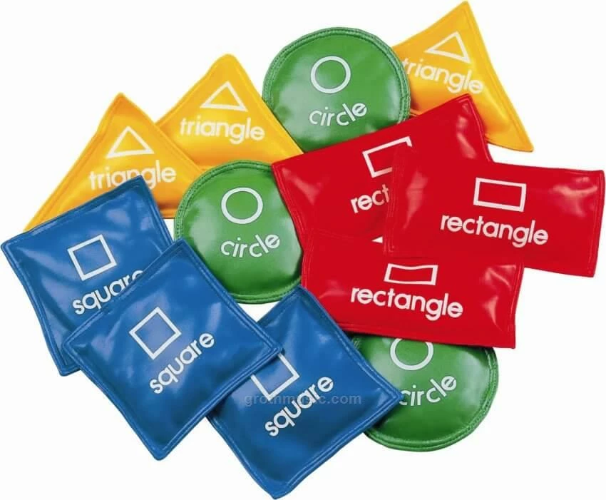Our Champion Sports bean bags are ideal for throwing, catching and learning. Perfect for tossing games and for developing motor skills, these soft vinyl bags are rugged and hand conforming. We offer a variety of styles with letters, numbers, shapes, colors or plain for everyday fun. These double-reinforced vinyl shells with soft corners are filled with non-toxic plastic pellets. This set of eight bean bags are imprinted colors.