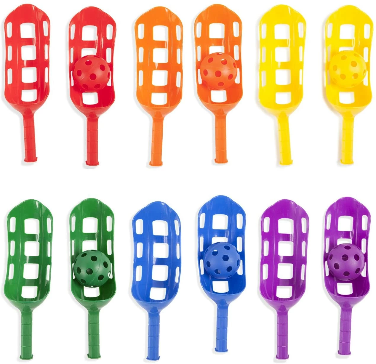 Practice hand-eye coordination while having fun with the Champion Sports Scoop Ball Set. This pack of brightly-colored plastic scoop balls and paddles make an excellent fun game to play, and a safer alternative to lacrosse. Each affordable set comes with twelve plastic scoops and six matching balls.